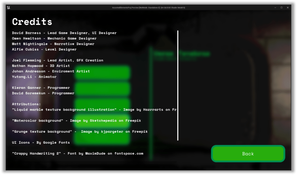 As the UI/UX Designer I workings on all the User Interfaces in game and in the main menu.